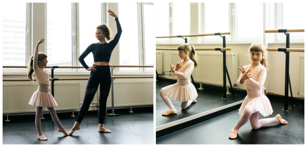An die Fähigkeiten und Bedürfnisse der jeweiligen Altersgruppe angepasst erlernen wir im englischen Stil die Grundlagen des klassischen Balletts. Wie im Erwachsenenballett auch, gliedert sich eine Unterrichtsstunde in je einen Abschnitt an der Stange, in der Mitte und durch die Diagonale. Zum Abschluss wird natürlich gedehnt.